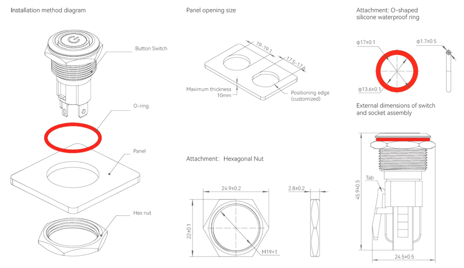 IP65 waterproof grade at the end of the button (IP67 can be customized);