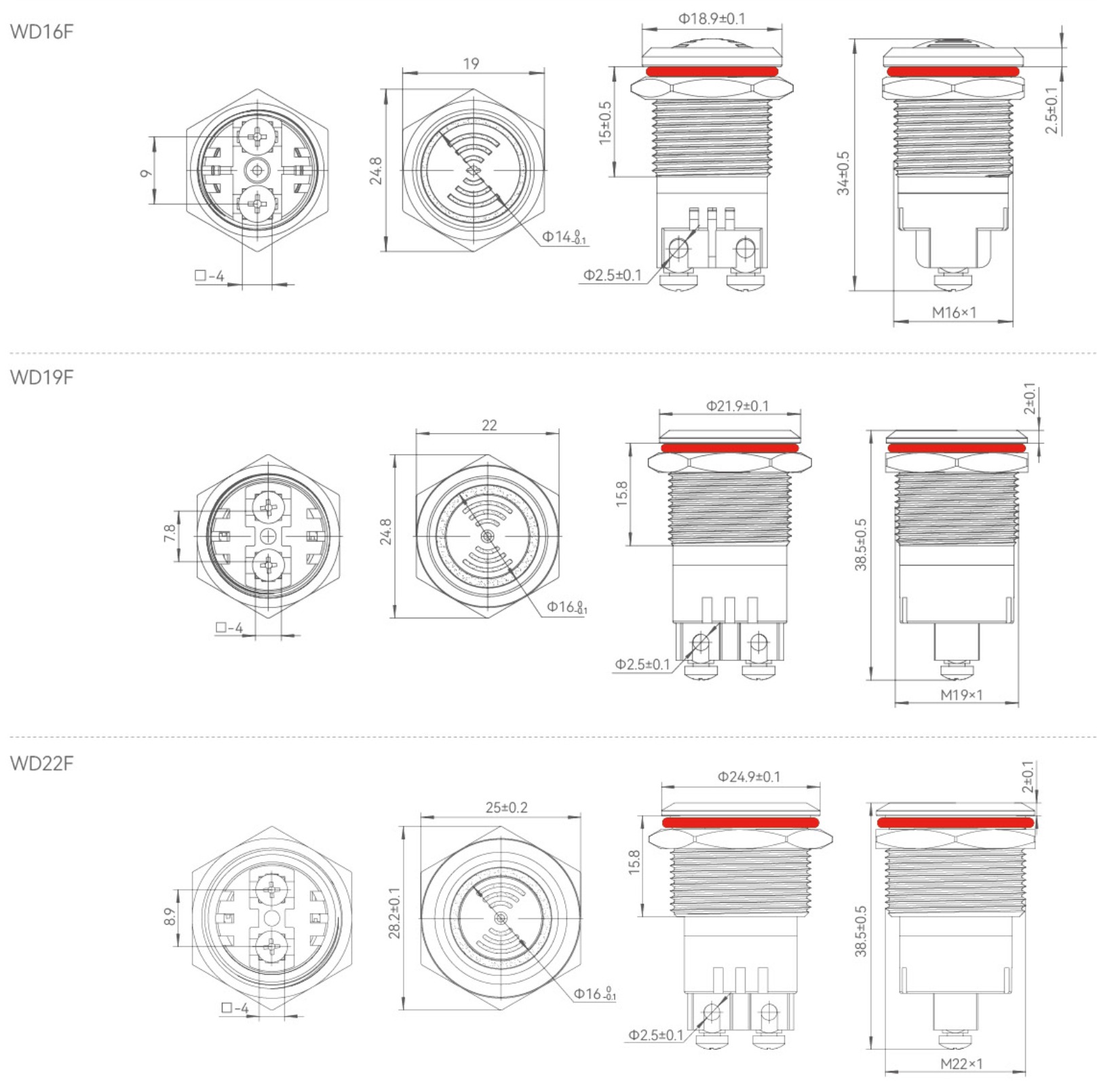 The 16mm and 19mm high-decibel metal buzzers with indication are compact yet powerful signaling devices designed for industrial and commercial applications.