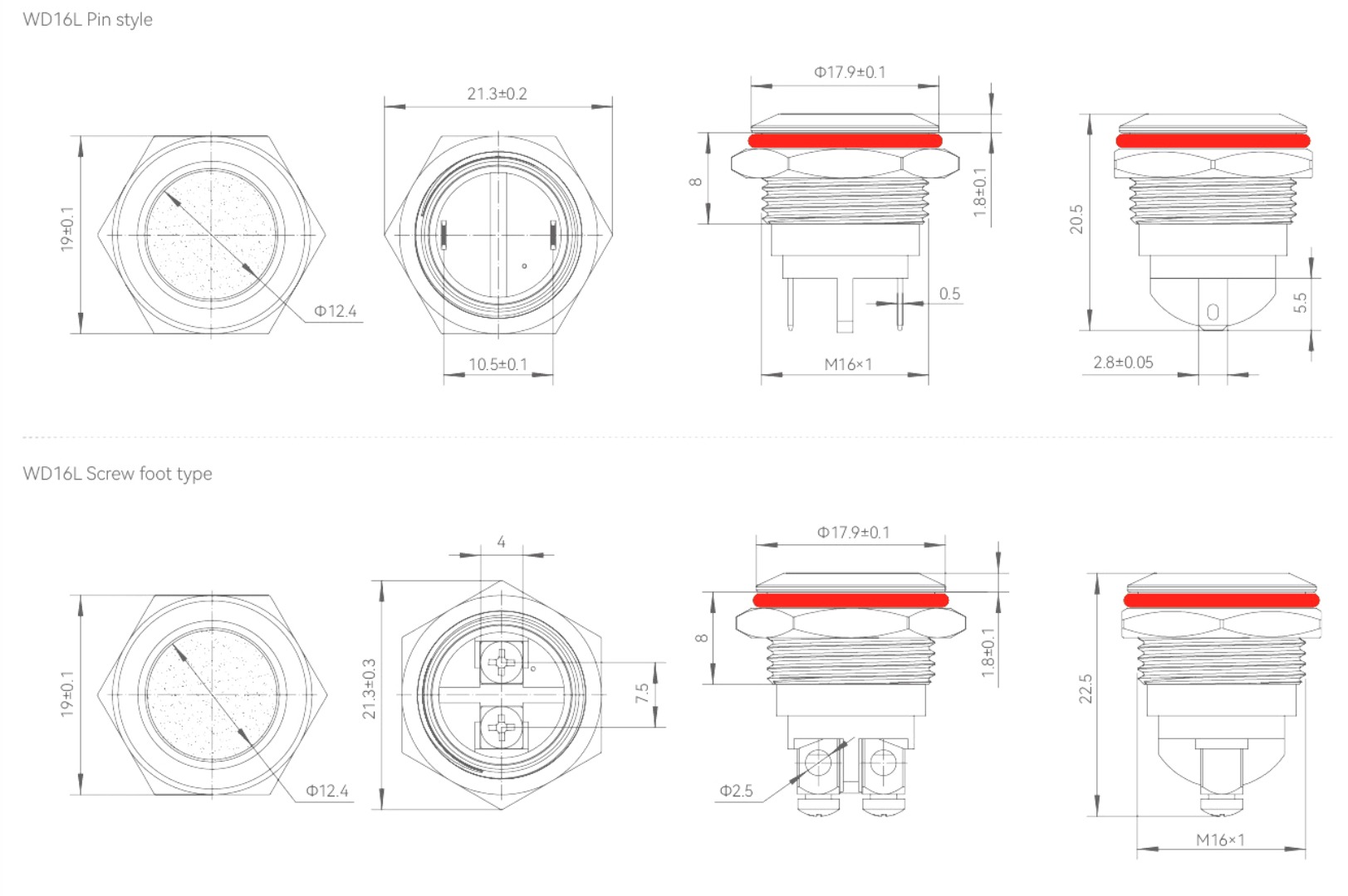 •             WD16L-P1-R Metal Indicator Lights WD16L-P1-R