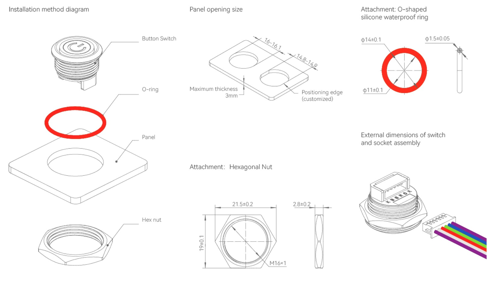 The 16 mm waterproof short-travel metal button switch delivers a generous button diameter for improved ergonomics, paired with precise actuation in harsh environments. With a travel distance slightly greater than ultra-short types (commonly ~2.5-3 mm), it offers a more substantial feel while still being responsive. Its waterproof sealing achieves IP65 or IP67 protection, safeguarding internal components from moisture and dust.