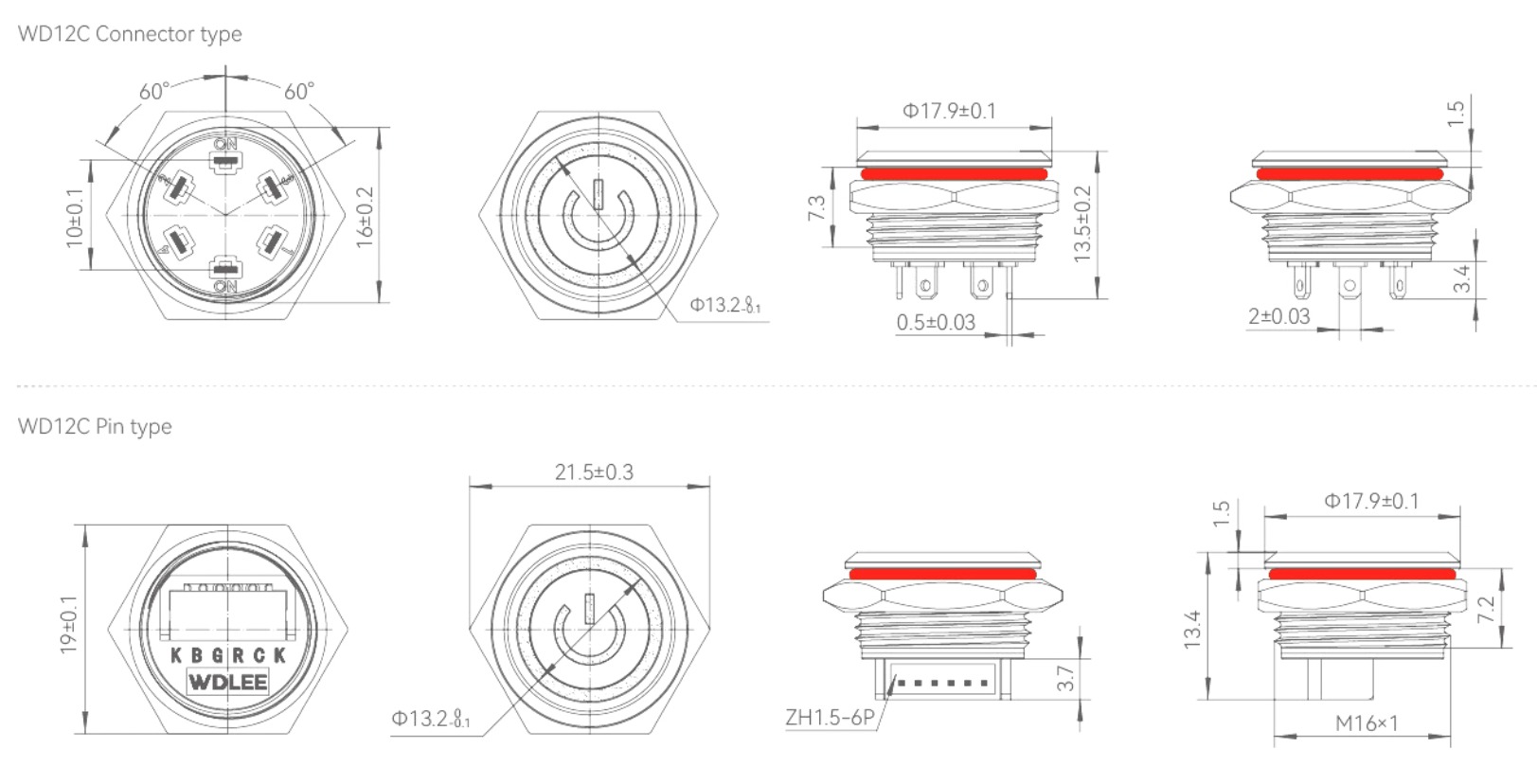 •             WD16C-P1-S Metal Pushbutton Switches WD16C-P1-S