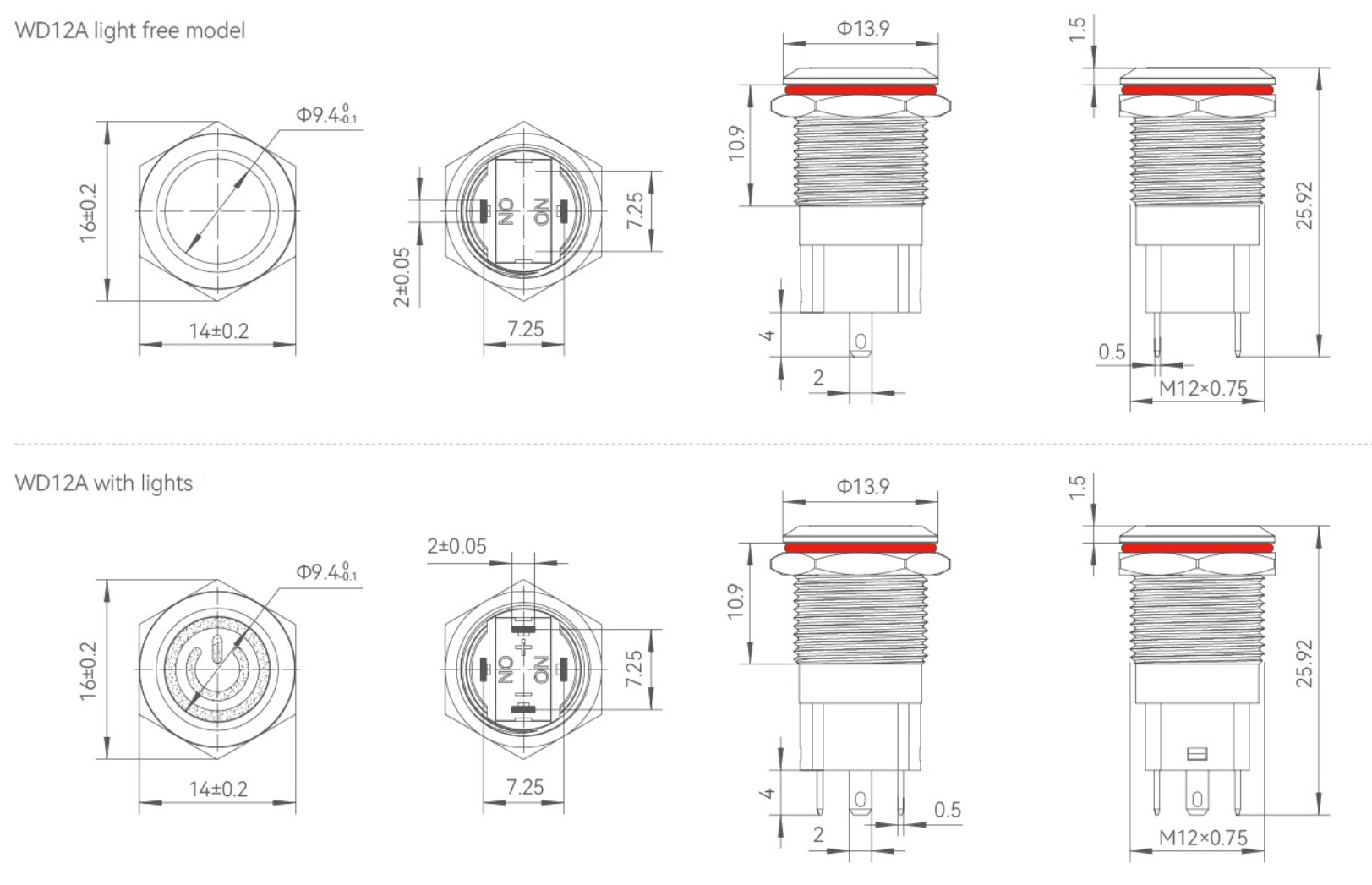 •             WD12A-P1-A Metal Pushbutton Switches WD12A-P1-A