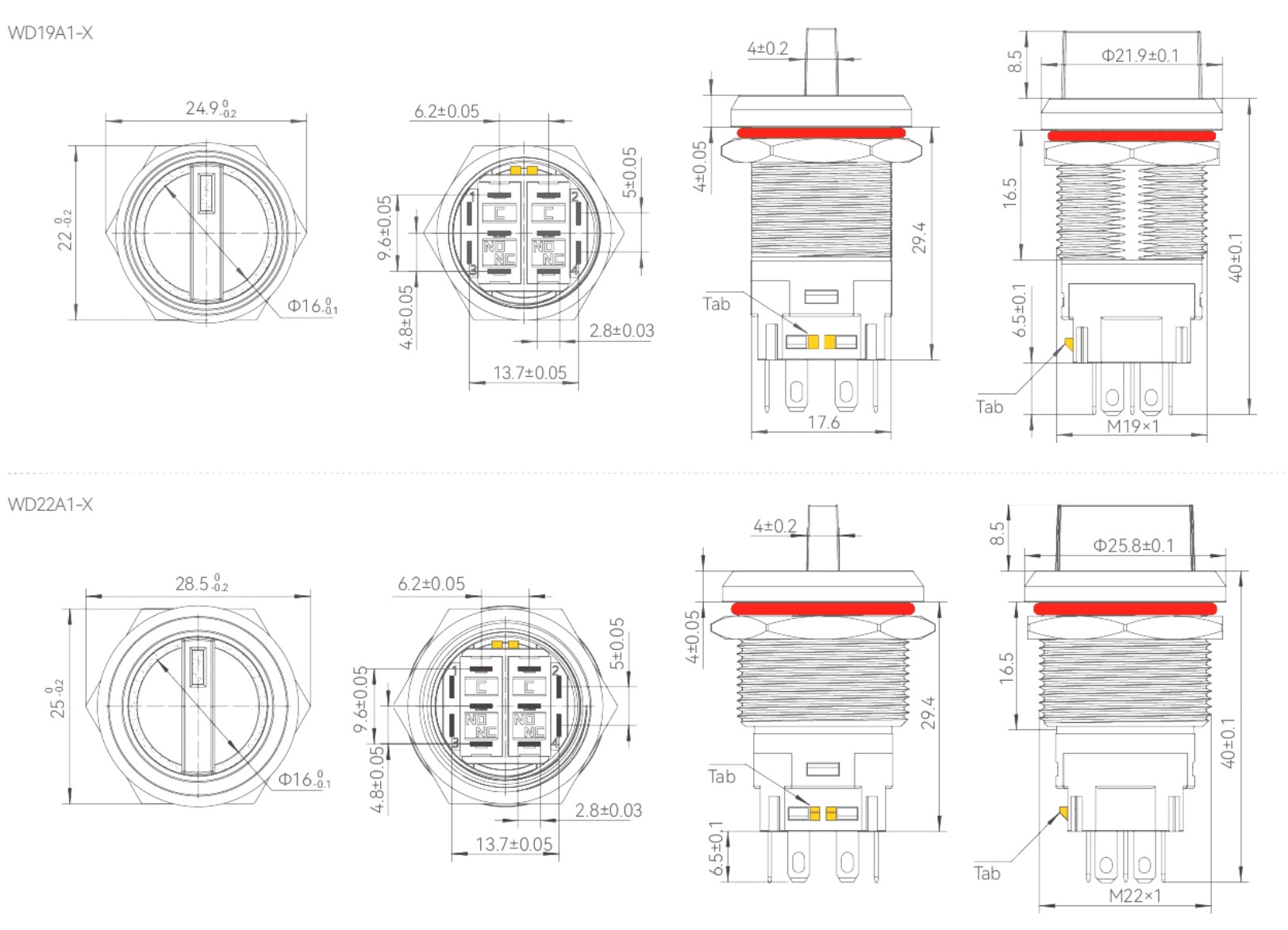 Wandu Electric mainly produces various switch products such as metal button switches, metal indicator lights, metal emergency stop switches, knobs, keys, buzzers, etc. lts switch products have the characteristics of waterproof and dustproof, and are the only ones in the industry that have independently passed the airtightness test for metal button switches, ensuring the reliability of the product in various environments. The company provides switches and indicator lights with various installation diameters, including conventional series, high current series, waterproof series, and can be customized and developed according to customer needs.