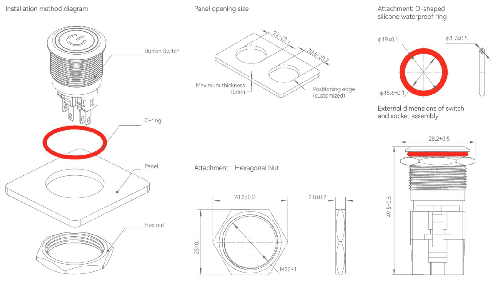 Wandu Electric mainly produces various switch products such as metal button switches, metal indicator lights, metal emergency stop switches, knobs, keys, buzzers, etc. lts switch products have the characteristics of waterproof and dustproof, and are the only ones in the industry that have independently passed the airtightness test for metal button switches, ensuring the reliability of the product in various environments. The company provides switches and indicator lights with various installation diameters, including conventional series, high current series, waterproof series, and can be customized and developed according to customer needs.