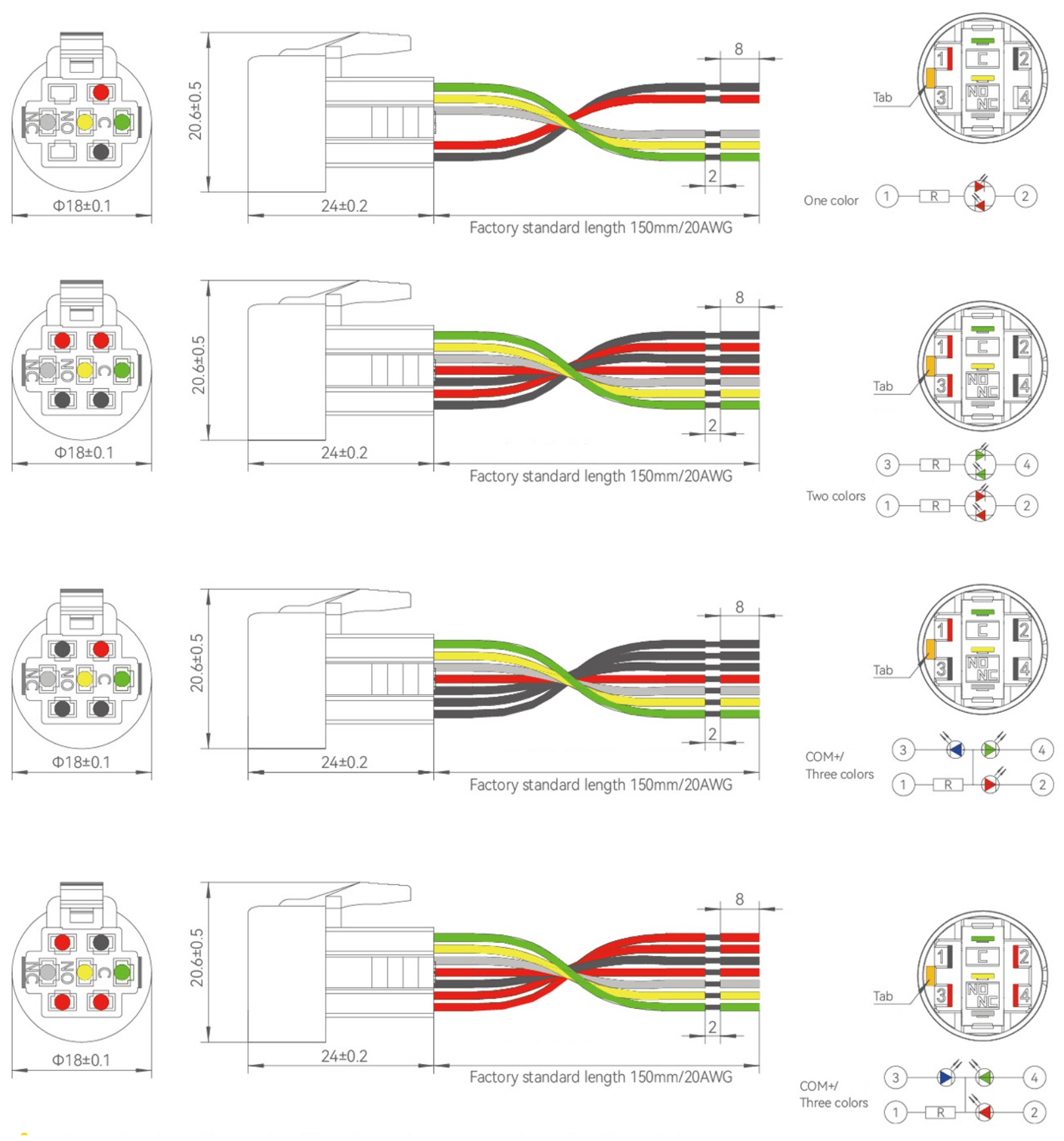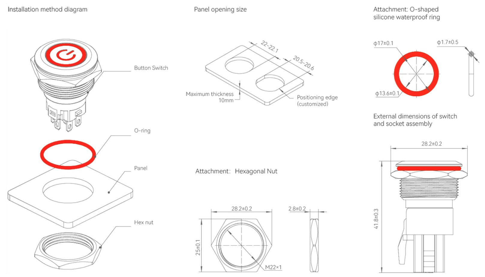 The 22-mm two-/three-color metal push button switch elevates visual feedback with multi-color illumination. The larger 22 mm face allows broader, more vibrant LED zones for dual- or tri-color lighting. Built with premium metal texture, self-locking design, and optional wired socket connections ensures both user comfort and contact stability. Use in safety panels, control stations, marine equipment, or any setting where visual differentiation is important.