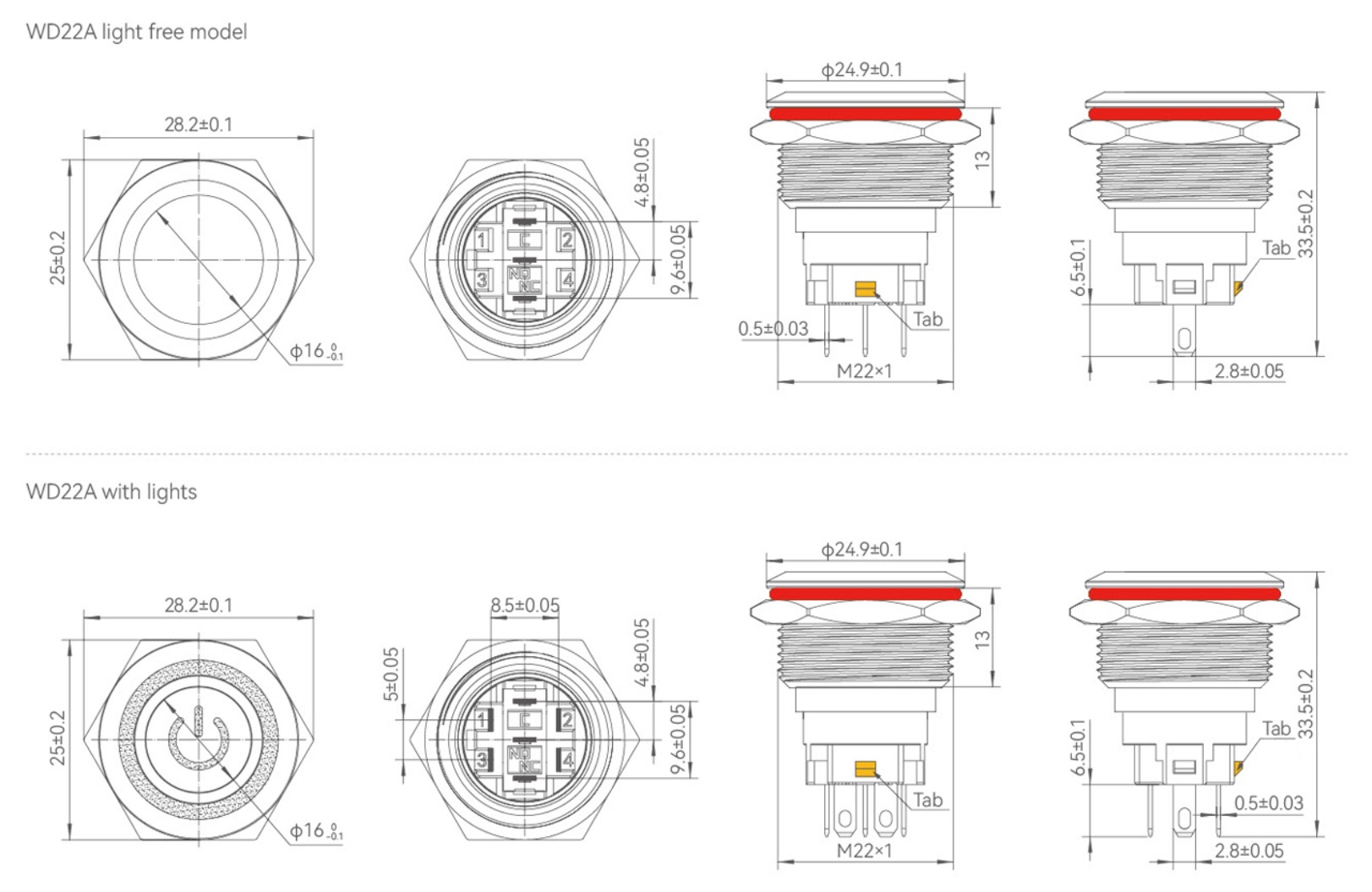 •             WD22A-P11-S Metal Pushbutton Switches WD22A-P11-S