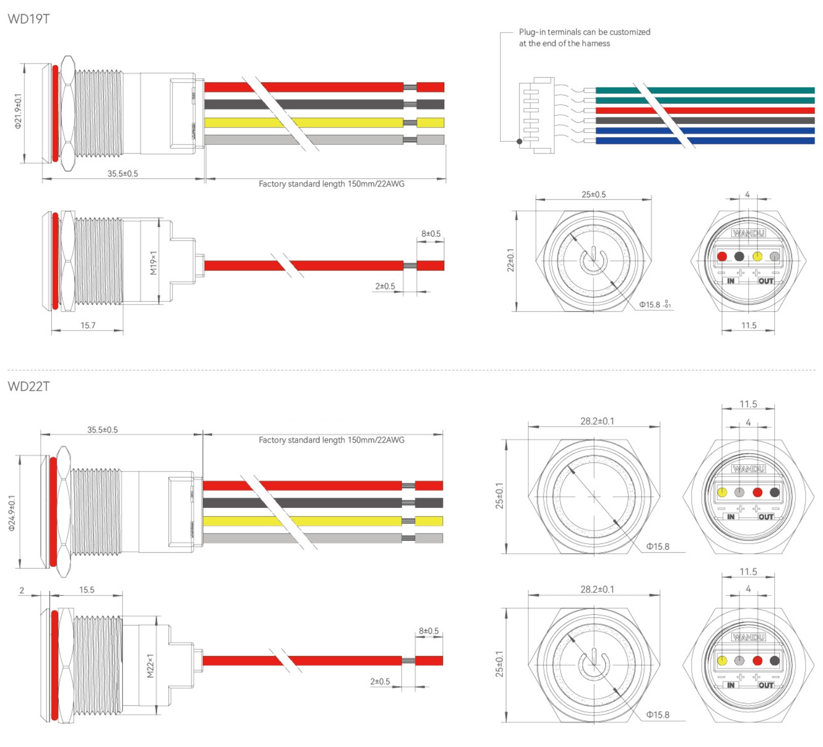 Wandu Electric mainly produces various switch products such as metal button switches, metal indicator lights, metal emergency stop switches, knobs, keys, buzzers, etc. lts switch products have the characteristics of waterproof and dustproof, and are the only ones in the industry that have independently passed the airtightness test for metal button switches, ensuring the reliability of the product in various environments. The company provides switches and indicator lights with various installation diameters, including conventional series, high current series, waterproof series, and can be customized and developed according to customer needs.
